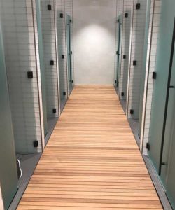 The final result is a cohesive, spa-like atmosphere that blends luxury with performance—bringing warmth and sophistication into a space traditionally focused only on utility. This project highlights how custom teak wood flooring can transform even the most demanding environments into something truly exceptional.